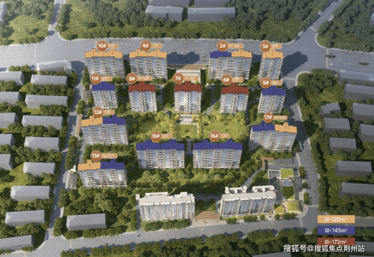 该项目容积率1.8,一共14栋15-17层的小高层,低密小高层+洋房,主力建面约120-174㎡,全三房起步,四代宅得房率约有100%,对比周边老破小和刚需盘,改善属性直接拉满。