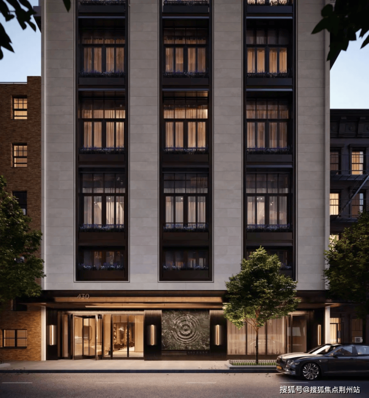 底层入口采用巴伐利亚石灰岩,与建筑外立面的材质相呼应,展现出稳重而精致的气质。