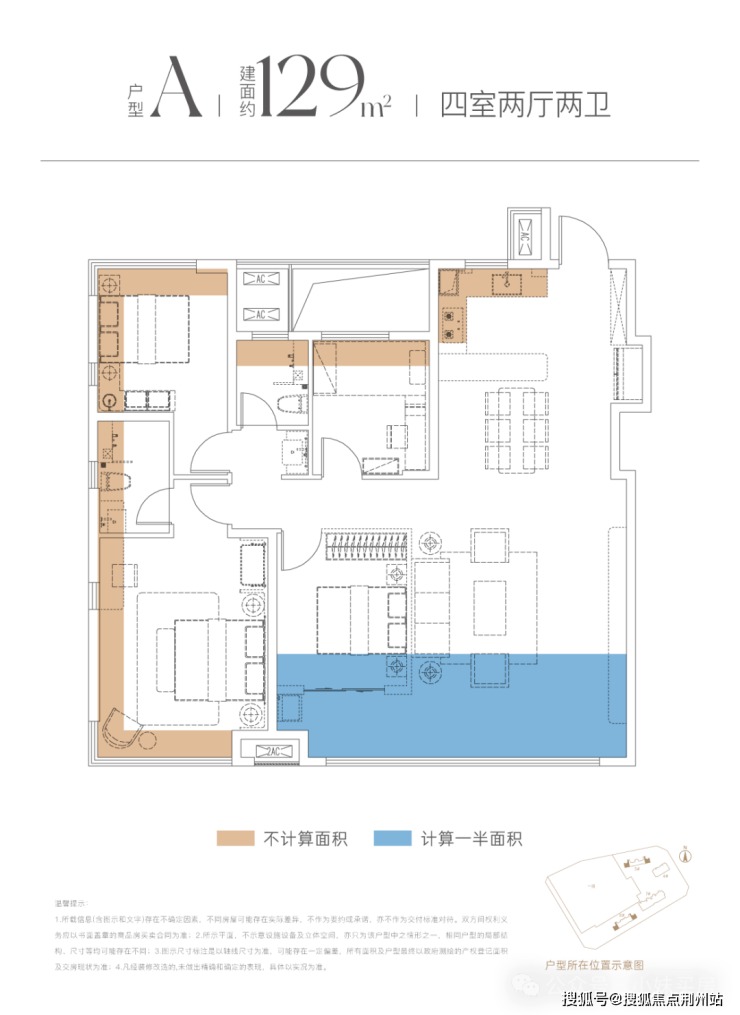 项目建面约129㎡户型更是将南向采光面扩容至约12米。