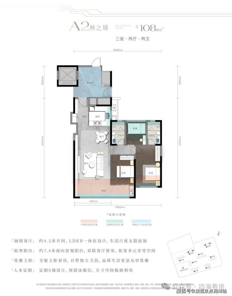 作为武汉城投生态新四代启序之作,以超100%实用率(含电梯厅),融入尊崇电梯入户、LDKB一体化大横厅、玄关S墙等创新设计,以空间、场景兼具的改善作品,为更超前的人居体验作答。