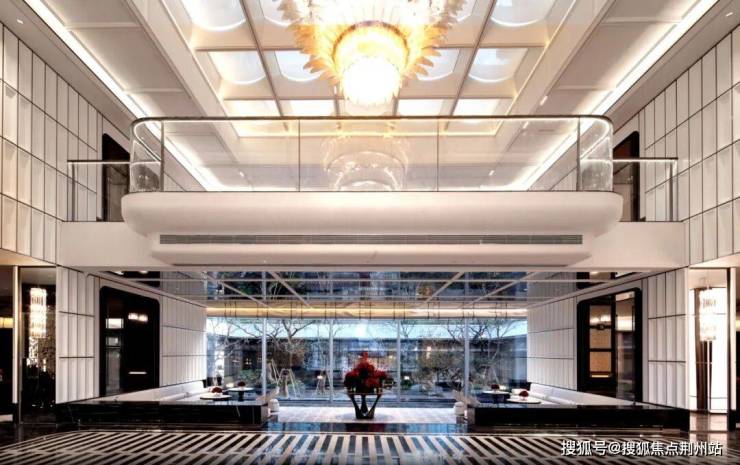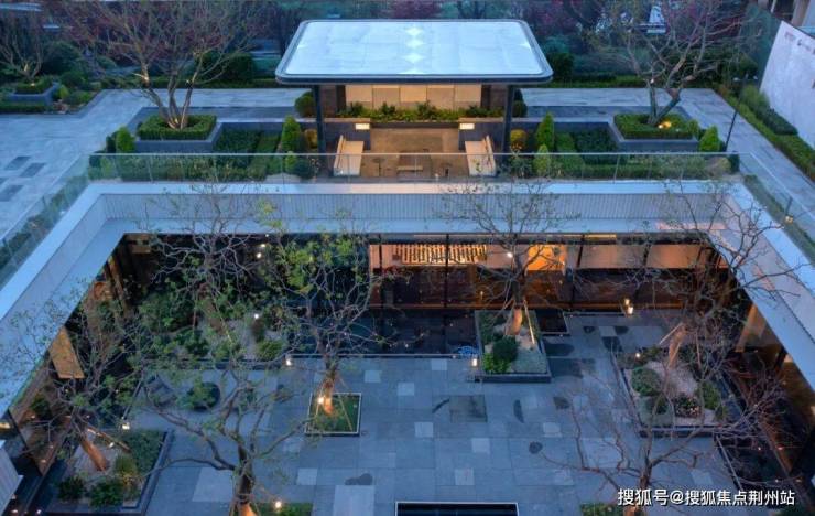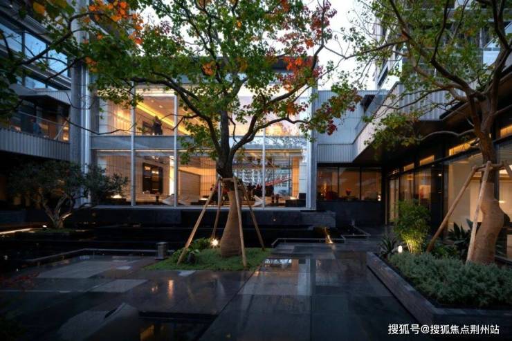 透过大堂玻璃幕墙,近320㎡下沉庭院“月映水院”静谧舒展。