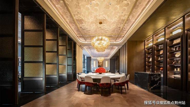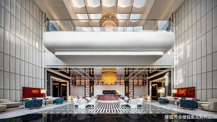地面拼花汲取洲际酒店集团金普敦美学,以精致工艺铺陈细腻层次;顶部水晶吊灯如凤羽舒展,倾泻一室璀璨。