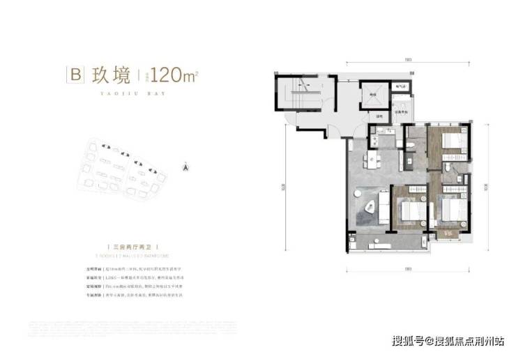 B户型 建面约120㎡ 三房两厅两卫