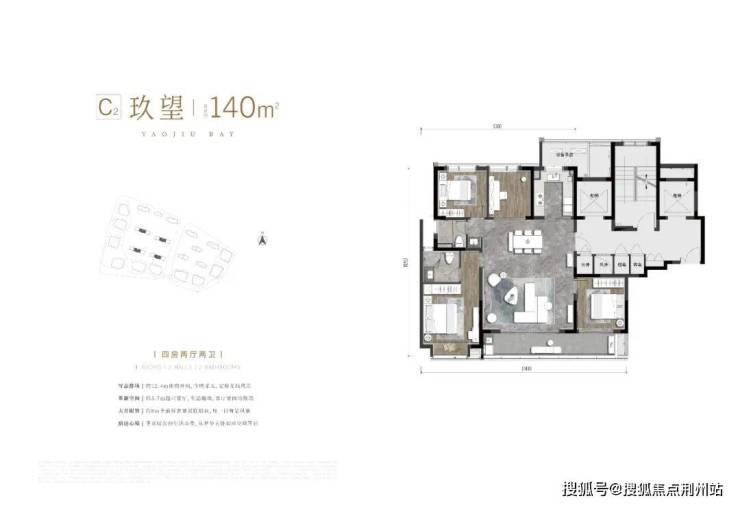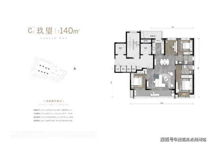 C2户型 建面约140㎡ 四房两厅两卫