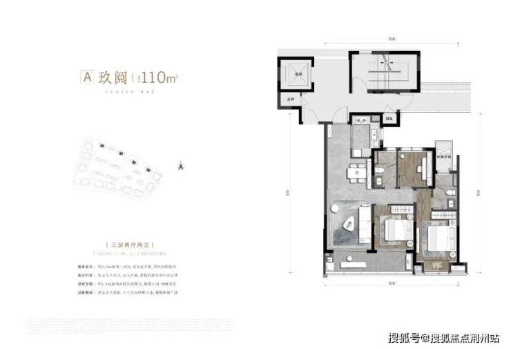 A户型 建面约110㎡ 三房两厅两卫