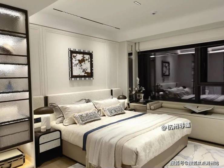 主卧背景墙为交付标准,并做了转角飘窗设计,采光和视野更好。