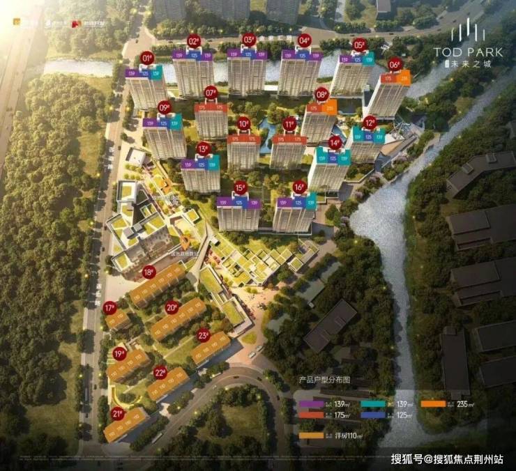 润启未来之城分南北两个区块,北区由16幢19-26F高层住宅组成,南区则由7幢8-10F洋房、小高层、商业街区以及商业办公楼组成。