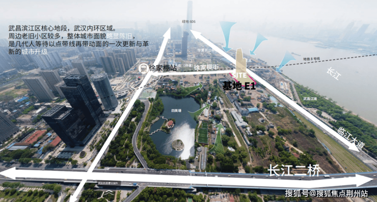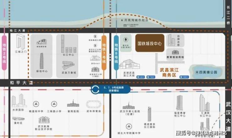 地处城市窗口及桥头堡、武昌滨江商务区核心区,扼守武汉大道长江二桥及滨江城市门户的新地标。占据城市发展中心的黄金区位,是商业资源的汇聚高地,是城市产业、经济发展的前沿封面。大气前瞻性的特色建筑,是武汉中心城区新的地标建筑与城市门户封面。