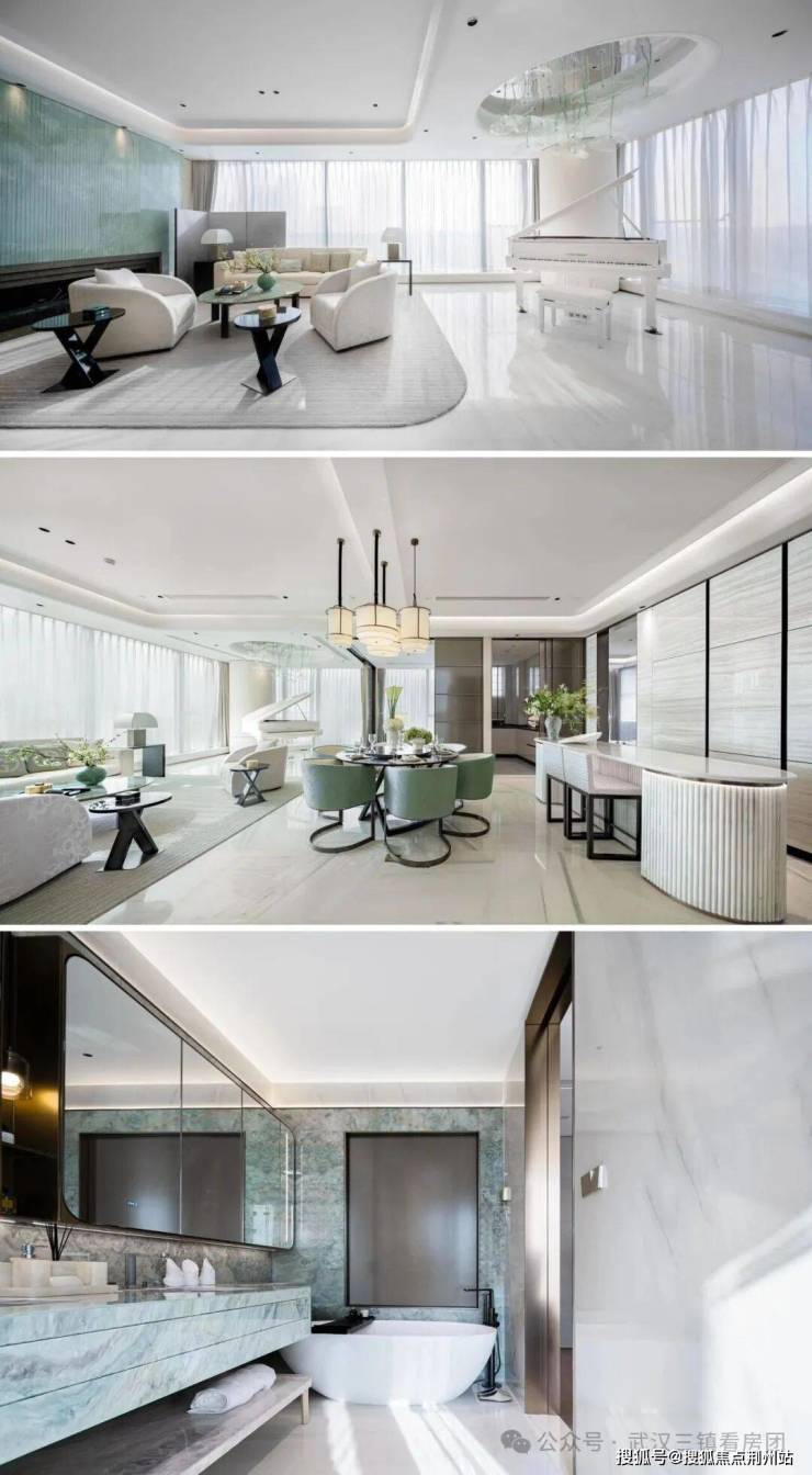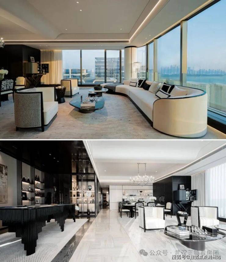 空间设计:注重公区边界互通共融,通过点聚面的手法打造指数级空间效果。室内设计融合东方人文内核与当代时尚,采用香奈儿经典米黑配色、菱形格纹、双C logo等元素,结合白玉兰大理石、水晶吊灯等材质,营造出优雅奢华的居住氛围。