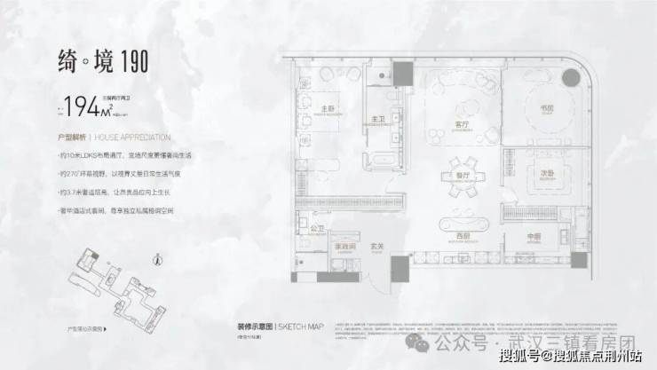 "绮境190“尊享户型,以约10米LDK通厅彰显奢阔空间,270°环幕视野拥抱自然美景,奢华酒店式套间营造独立私属格调,约3.7米层高提升空间质感,完美融合尊贵、舒适与品味,定义高端居住新典范。