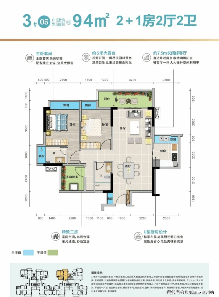 3#05户型:约94㎡2+1房两厅两卫(三口之家)