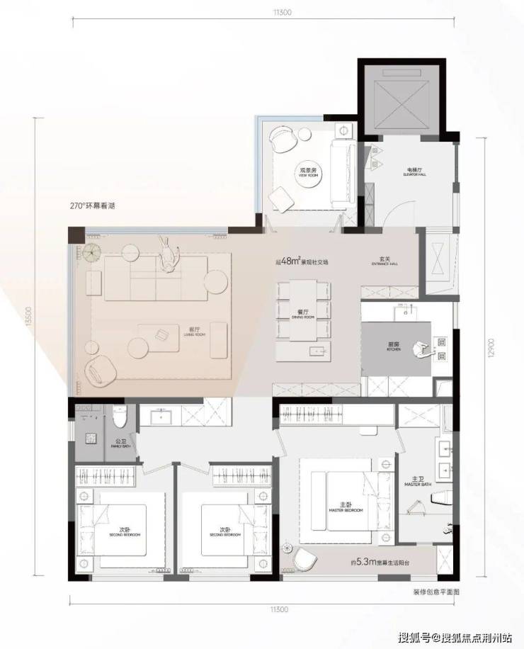 户型设计上,1号楼和3号楼为140㎡户型,2号楼边户119㎡、 中间户96㎡户型,4号楼和5号楼则包含96㎡、119㎡、125㎡多种选择。相比大成乐府,知音乐府新增了125㎡的全景舱户型,进一步丰富了产品线。