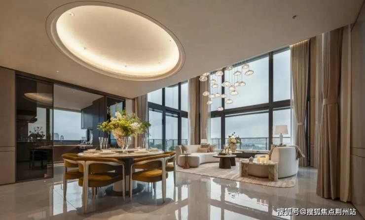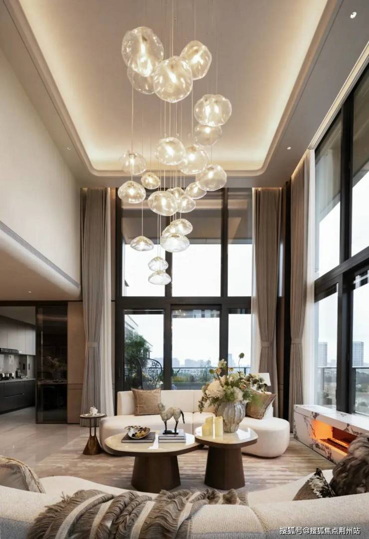 建面约260㎡奇数层户型:整体开间约23.8米,主卧开间4.5米;LDKB开间超10米,带超大空中庭院;北面大阳台开间7.3米;高约5.3米,宽约12.3米的双层挑空的东向湖景客厅,像把家变成了“城市观礼台”。