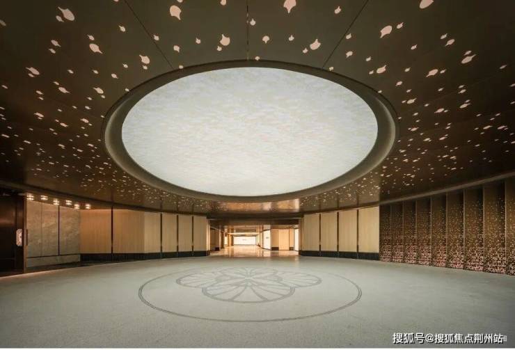 门庭中心以天圆地方造型点睛,配以大块亚马逊绿石材,形成“由隐入奢”的视觉过渡,无需知识储备,都能感受到身份认同。