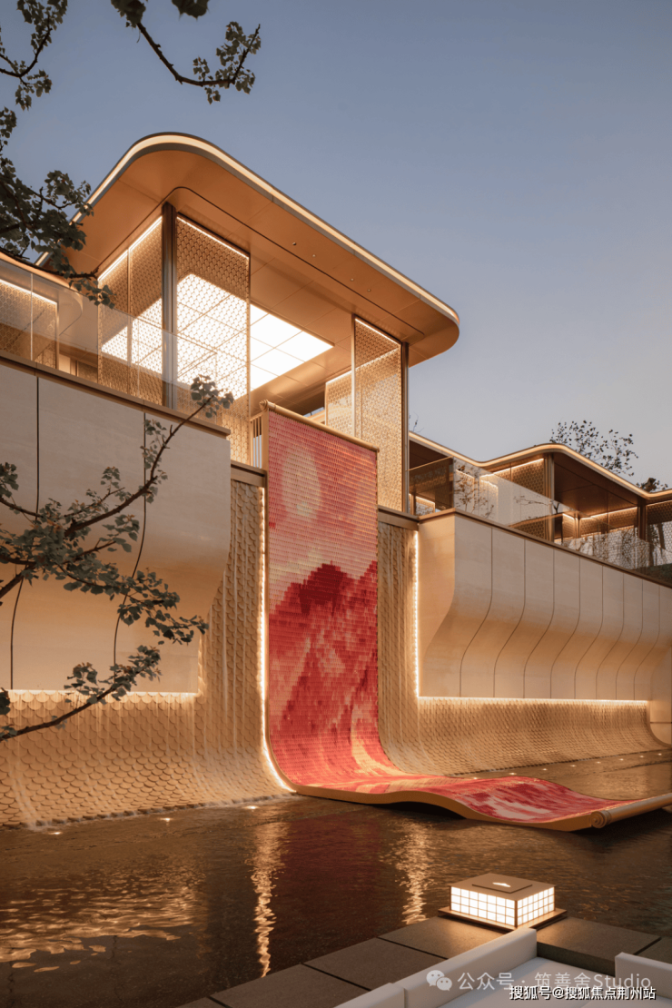 以“山水人文·礼序栖居”为核心构想,构筑了一个立体的景观框架,巧妙地将金陵文化的金鳞、云锦、凤栖、龙鳞、东山金箔等经典元素与建筑空间相融,营造出“宜居、宜游、宜赏”的沉浸式生活空间。景观主题为“雅奢东方”,尽显尊贵气质,巧妙融合定制化的传统文化与现代审美,打造出独特的东方美学居住体验。在景观设计上,以《金陵四季图》为灵感源泉,提炼出七大自然元素,并结合东山文化名流的生活意趣,将这些元素巧妙融入具体设计中,为当代精英阶层打造了一个充满文化底蕴的生活意境。