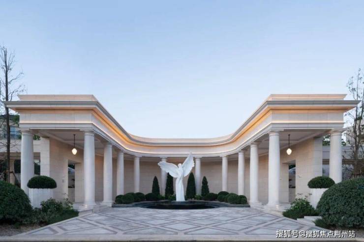 通过一条具有序列感的希腊柱式廊道,连接起主入口、落客庭院和“卫城”会所,共同组成优雅的沿街界面,向城市延展开来,成为整个住宅区域与外界既交融又开放的过渡空间。