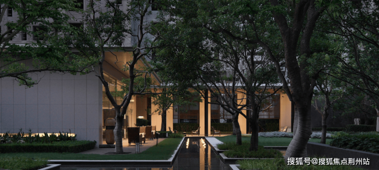 奢雅的宝门廊、酒店式落客和超尺度水景空间的运用,生活功能与设计手法并行,无一不凸显着迎宾式的高贵归家感受,围合的院落完成了从都市到安静的自我空间领域的过渡。