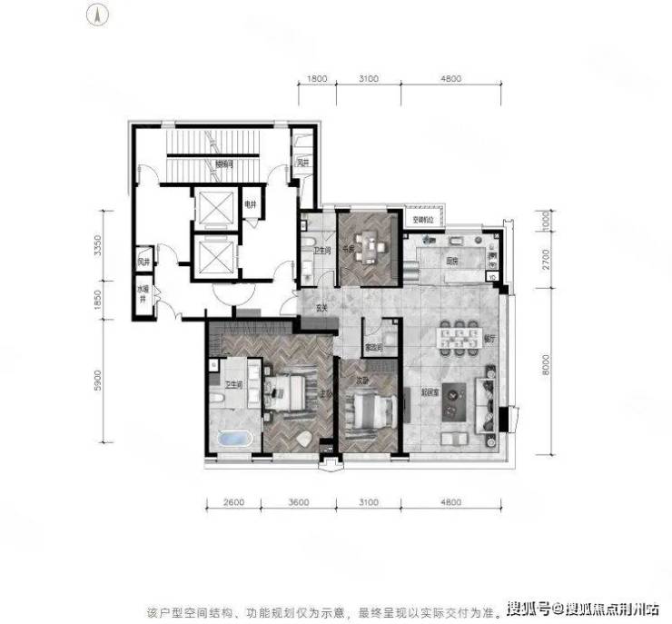 在户型设计方面,项目有两大产品特点:一是采用宽厅设计,让业主可以根据生活需求灵活使用;二是180㎡产品采用端厅设计,使客厅拥有270 °采光面,东侧可观海,端厅的优势在于可以满足当下客户对公区空间和视野景观的极致化追求,也象征着审美与品味的高度。