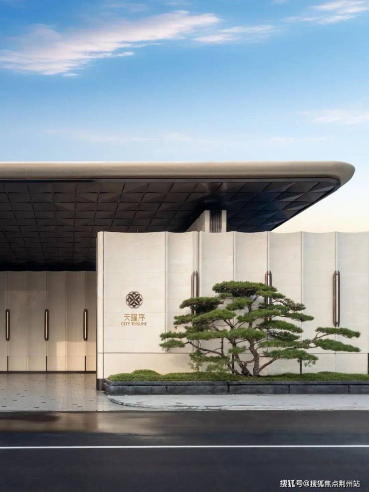 门头两侧,黑松孤植入画。不得不说一下天曜序这棵非常罕见的镇宅黑松,它完全没有其它楼盘常见的那种“矫揉造作的人工痕迹”,而是天然的飘逸、俊秀、兼具苍古之姿,冠幅舒展层次丰富,颇具山水画卷的意境之美: