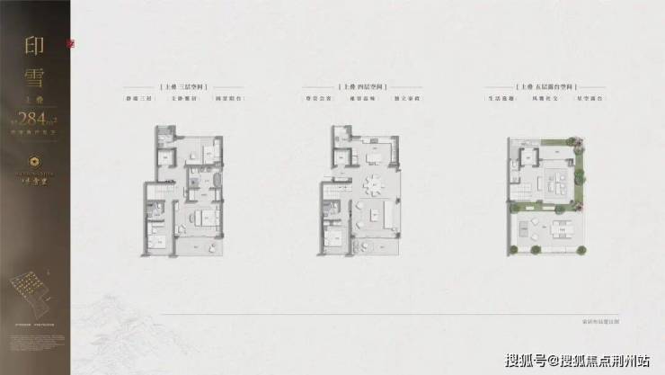 中间套300㎡地上三层双主卧套房设计,每间卧室连通露台或庭院;L型景观面实现“移步异景”。