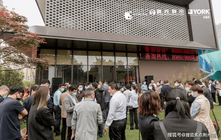 虽然处于后疫情时代,从现场图片看来,前来参观的媒体及周边买房人还不少,大家齐聚楼前,静候营销中心开放。