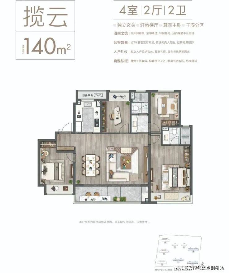 项目规划了4栋高层住宅产品,预计6-7月开盘。户型有103㎡、116㎡、135㎡、140㎡,精装,标配3大件交付。