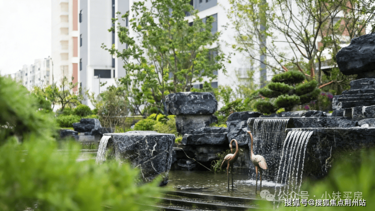 园林已完整呈现,中心水景采用“叠石理水”手法,青石错落堆叠,水流自高处缓淌而下,落入浅池,发出轻柔的潺潺声。