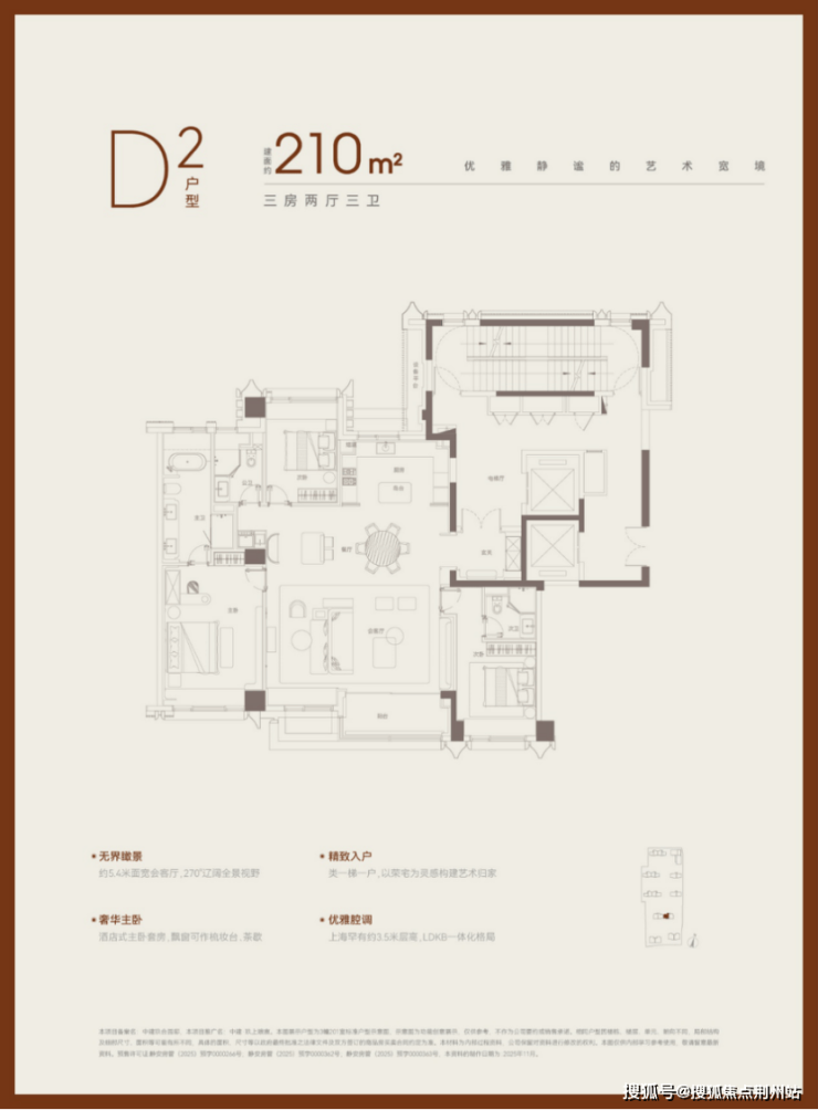 【3#210㎡户型】——南向俯瞰下沉式庭院,北侧私藏浮光池院。