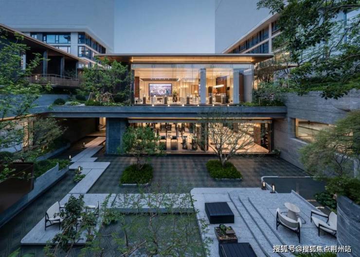 丽香庭借鉴古典入园空间序列,打造多重院落、层层递进的归家礼序。地块整体抬高约3.7米,最大高差超过7.5米的下沉庭院,以微妙的视觉层次划分功能空间,通过散点布局、小空间组织,消解空间中心;自然山水垂直铺展,形成多维“立体庭院”。游廊曲折、台地错落,行走其间,循着自由灵动的立体游园路径,忘园入画,化境归心。