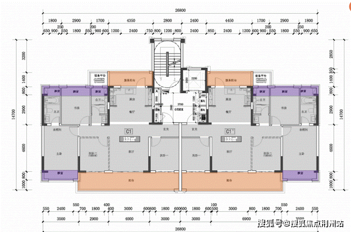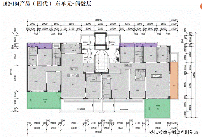 l 四代洋房(建面约162/164㎡):全系四房起步,1梯2户设计,4房2厅3卫