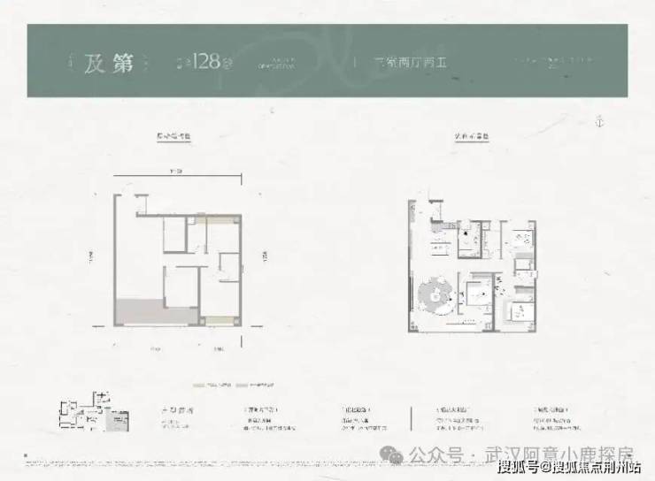 建面约128平,三房两厅两卫: