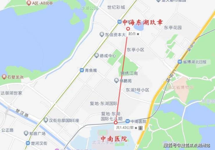 医疗上,项目与三甲医院武汉大学中南医院直线距离约1.4公里,地铁1站路,非常近。