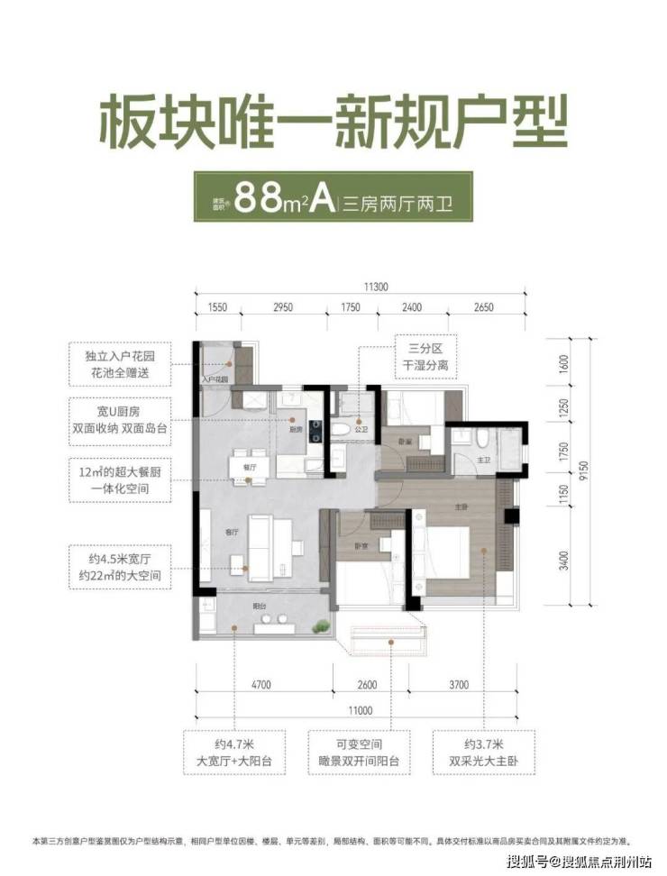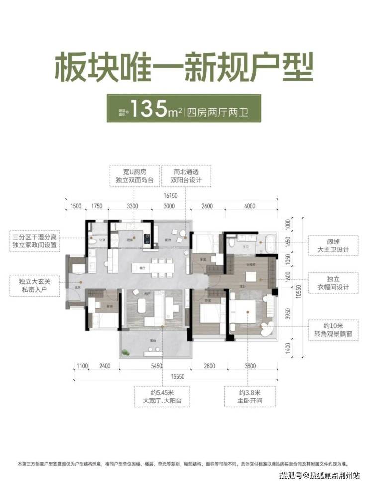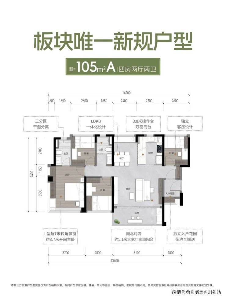 户型亮点:约 4.2 米阔绰宽厅,3.4米L型飘窗主卧