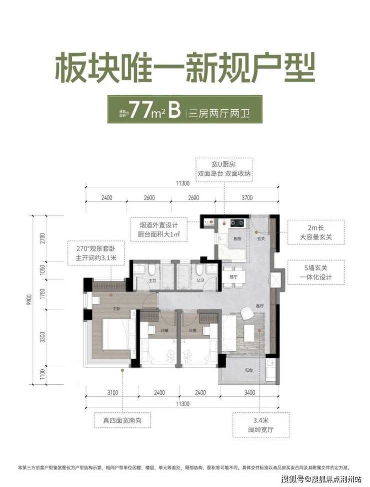 户型亮点:约 3.4 米开间客厅,270°观景套卧主开间约3.1米