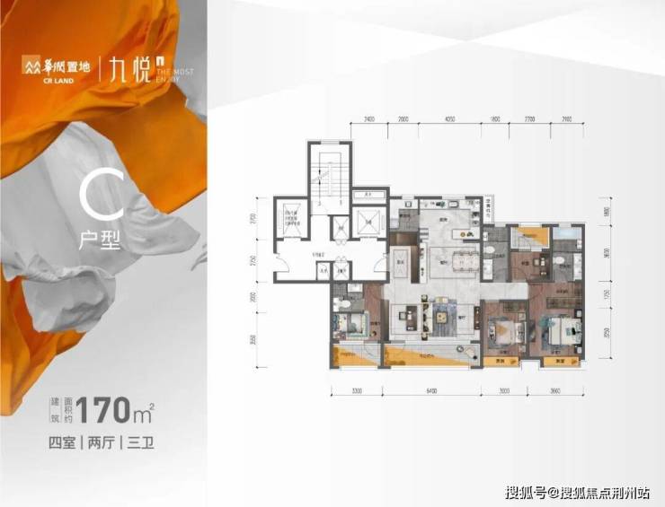 四室两厅三卫,墅级景观大平层户型,南向约17.1米的四面宽,客厅开间6.4米。南向3间卧室,双套房设计,4.2米超大开间主卧室,每个功能都更加宽绰,更显尊贵感,是华润最新改良的的升级力作!