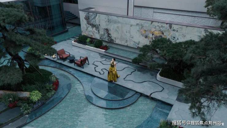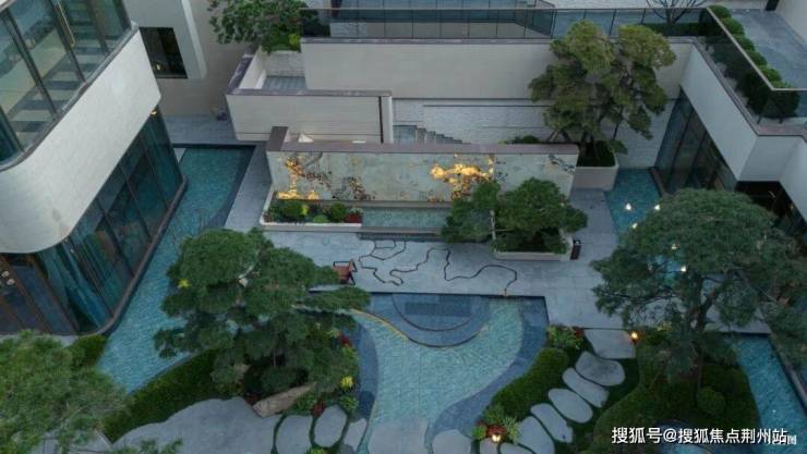 顺着礼仪前厅的台阶缓步向下,九曲云间下沉庭院骤然出现在眼前。