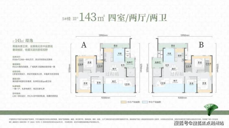 建面约143㎡四房,全小区只有2栋,均是17层小高层。一梯一户,4开间朝南,享约15.3米南向面宽,南北双阳台,约58㎡一体化方厅,也可根据实际需求变为4+X房。