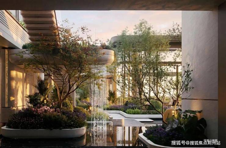 下沉会所以叠水、浮岛花池、悬浮楼梯等营造层次,抬板之上构建邻里共享的“绿色客厅”,铺展互动阳光草坪、层次绿景、儿童乐园及空中休闲区等,形成绿意盎然、亲子互动、邻里社交相融共生的立体景观系统。