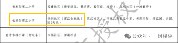 中信泰富滨江金融城代建的长春街第三小学已经开学。根据2025年江岸区的划片文件显示,该项目前期地块都是对口长春街第三小学和七一华源中学。