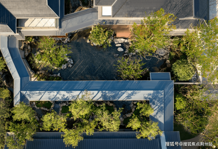 移步至宸庐的门庭前,两座归家府门分别采用了「重檐庑殿顶」和「重檐顶」设计的门头沉稳大气,而园中则更是溯源宋代刘松年《西园雅集图》,采用“欲扬先抑”规划手法,巧妙地运用对景、借景等造园技法,营造一种“结庐在人境,而无车马喧”的意境。