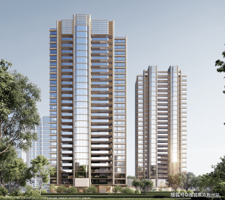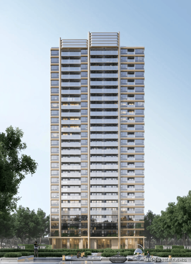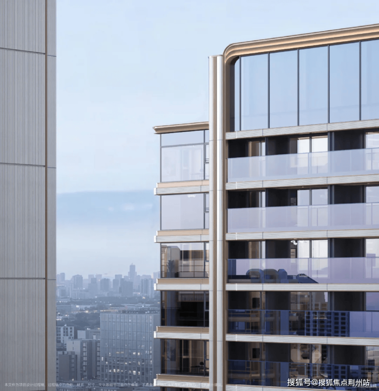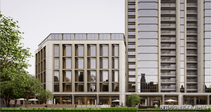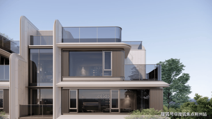 建筑立面搭载“天幕级通透玻璃幕墙”,以“流动光之容器”为设计内核,构筑起会呼吸的巨幕画框,以近60%的高窗墙比实现引光入室的极致表达,通过框景设计将城市景观与社区绿意纳入日常。