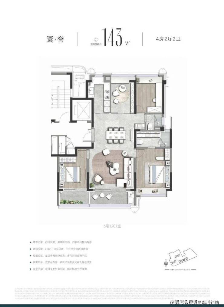 誉静安的主力户型为建面约143㎡四房,另有112-119㎡三房产品。作为上海首批“好房子”新规落地范本,项目以3.5代住宅理念实现空间效率的突破。