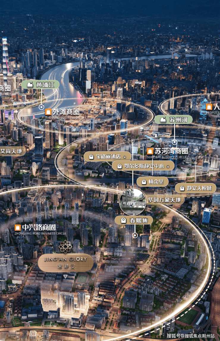 誉静安所在的静安内环苏河湾板块,是上海“一江一河”规划的核心承载区之一。项目具体位于8号线西藏北路站约300米处,周边聚集了静安大悦城、万象天地等商业资源,以及上海市中医医院、长征医院等多家三甲医院。项目地块分为两幅,相距不足300米,规划3栋17-25层高层住宅和4栋3层低密住宅。
