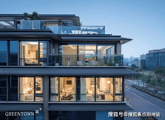 外立面:大面积玻璃+铝板,封闭式阳台