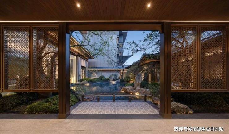 在宝格丽绿奢石屏风背后,是豁然开朗的约500㎡下沉水院。