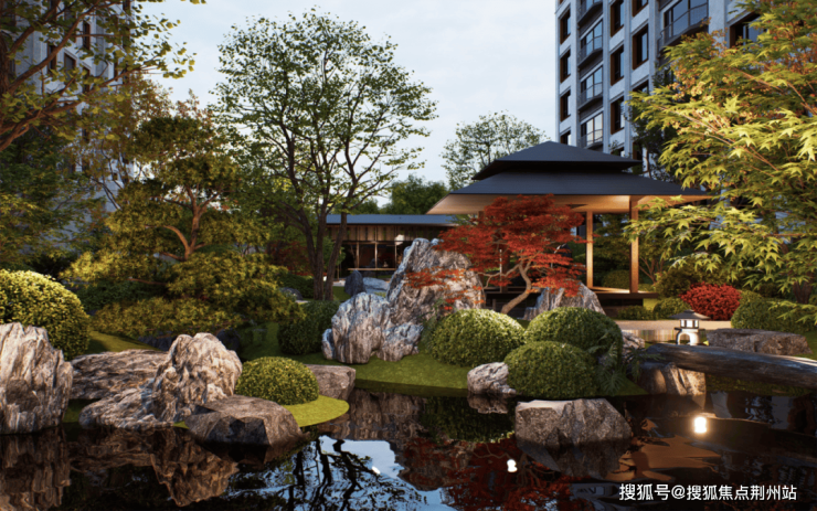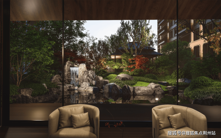 此外,美古花园在打造园林景观中用了约575吨石头,从入口一直深入园中,或是在起伏的草坡上、蜿蜒的溪流旁竖起一块巨石,或是在白沙上卧着一块奇石。即使是点缀其间的灯笼小品和步汀桥也都是石制的,与自然环境融为一体,展现中式园林艺术的禅意之美。北方园林尤其稀罕水景,而美古花园的水景面积,足足有约600㎡,水景又被分成了泉、瀑、涧、潭、溪、塘等多种形式。可以说,美古花园在园林景观方面做了一遍示范,如此不惜成本,目的是为天津楼市留下一个经典作品,不辜负大沽北路这块土地。