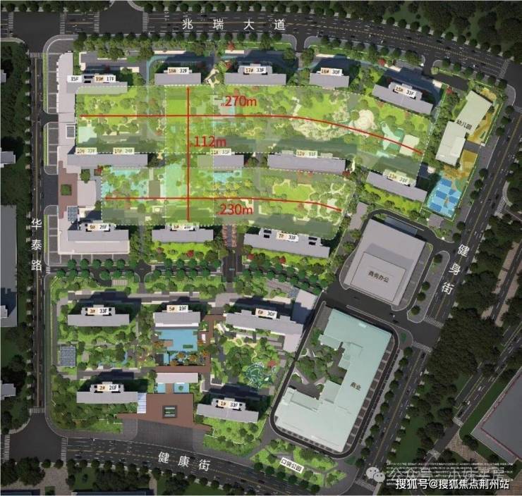 不仅如此,项目还在约4.6万方的绿化面积上,独创“三轴空间基底”,打造了武汉罕见的“三中央景观广场”。