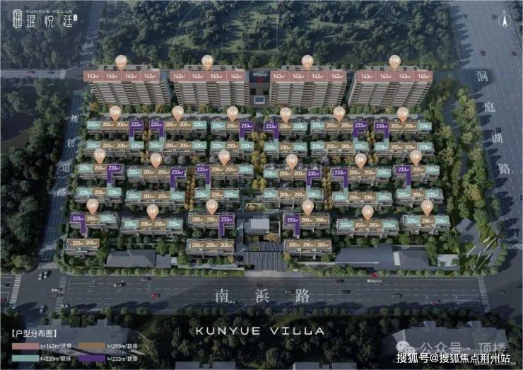 琨悦廷打造仅有289户的纯粹高端低密社区。南侧为115席建面约200㎡、220㎡、233㎡联排别墅;北侧为4栋总高11F,建面约143㎡洋房,仅此174席。