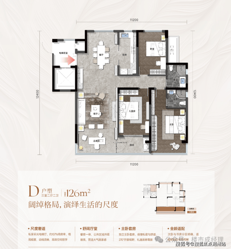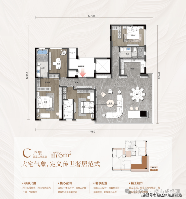 🏠 户型:建筑面积约126-176m²三/四房