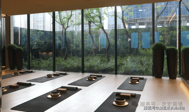 示范区运动休闲区整合游泳、跑步及瑜伽等多元空间,延续全景落地玻璃幕墙设计。通透界面引入充沛自然光,既延伸视觉纵深感,又使室内运动者饱览户外景观变化;自然光影流转间,让每一次舒展都酣畅淋漓。